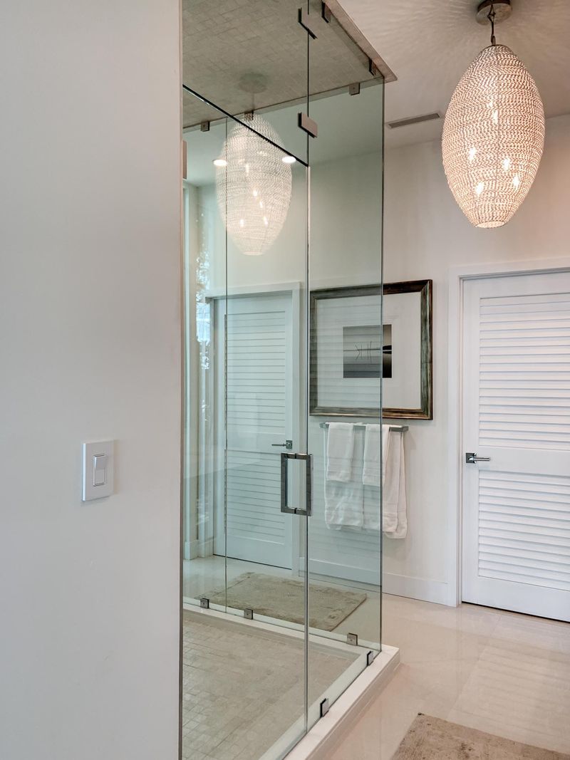 Frameless shower doors are entirely made of glass. They lack any metal framing. The all-glass design gives a very modern appeal to shower doors. Due to the lack of supporting frames, a relatively thicker glass panel is used in frameless enclosures to ensure suitable stability and support.
